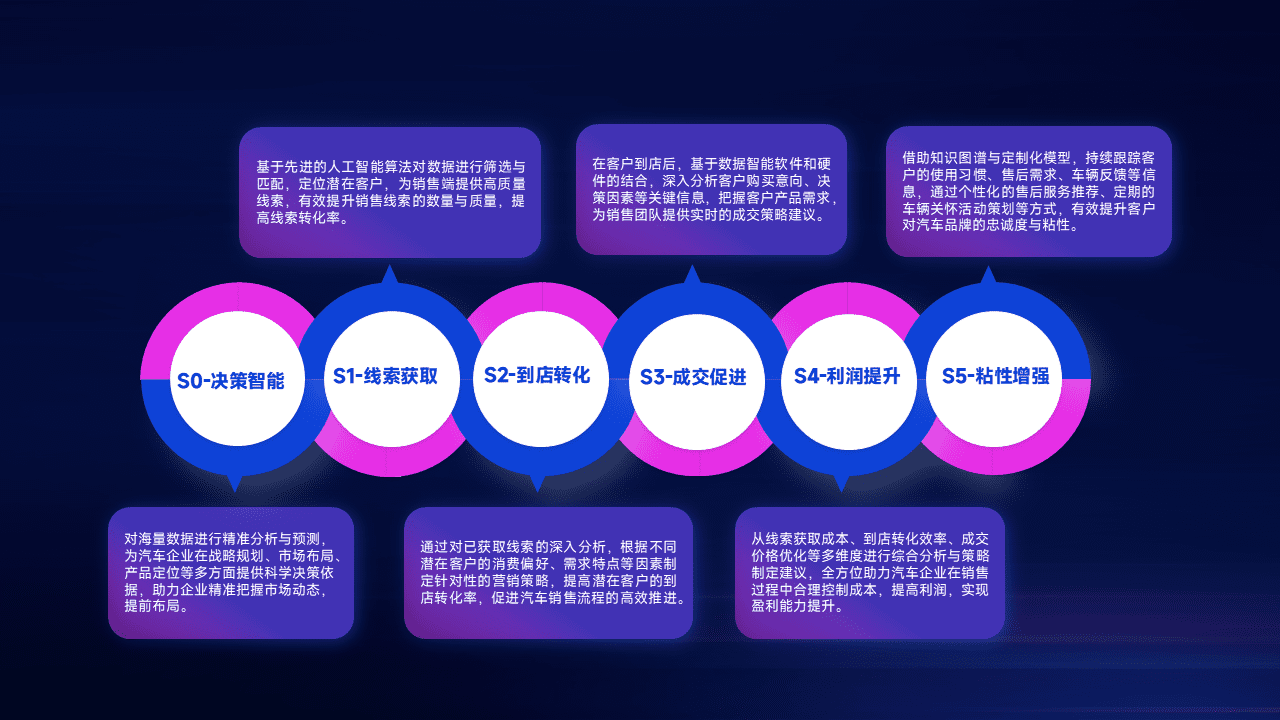 通过拓宽潜在客户来源、、优化线索分配并提高到店转化率,,,,以增强销售效率。。。同时,,利用线索数据不断优化分析模型,,,有效提升转化率,,,,扩大营销影响力。。